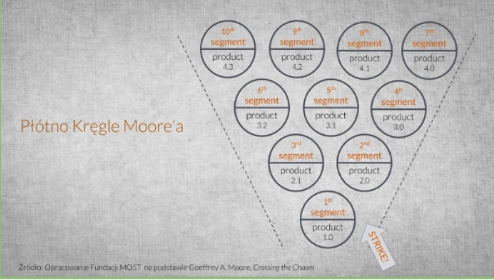 Why is it so important to determine the correct order of attack for each segment? As I wrote earlier, it is important to remember that buyers in the early majority group are pragmatic. They need to get a 100% solution to their problem. The solution we offer must respond very well to their expectations (all relevant functionalities, appropriate UX/ergonomics, reliability, proper service at the sales stage, service and after-sales support). Moore refers to such a solution as a Complete Product. Early adopters will be satisfied with an MVP (Minimal Viable Product) and are willing to pay for a product that is 80% complete, while the early majority is much more sceptical.